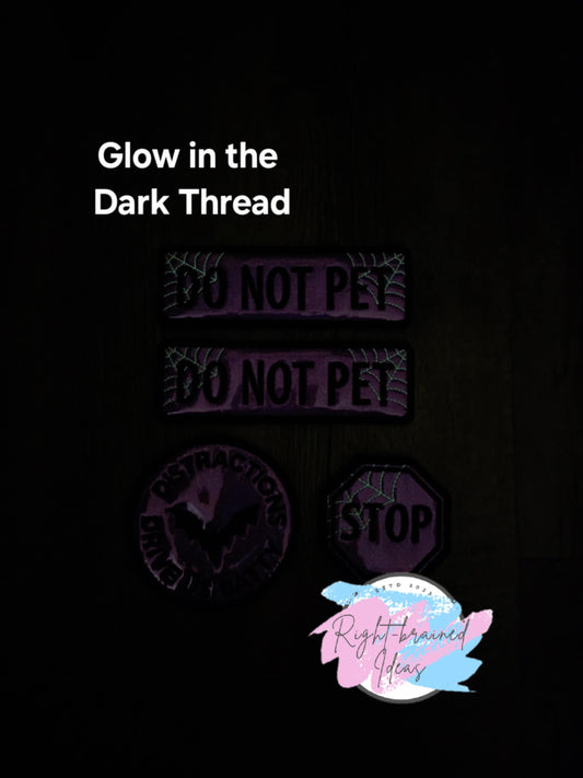 Do Not Pet Creepy Crawley Inspired Black and Glow-in-the-Dark White on Sparkle Purple Holographic Vinyl Four-piece Patch Set
