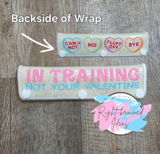 Sassy Conversation Heart Inspired In Training Multi-colored On Sparkle White Vinyl Two-piece Patch Tab And Leash Wrap Set