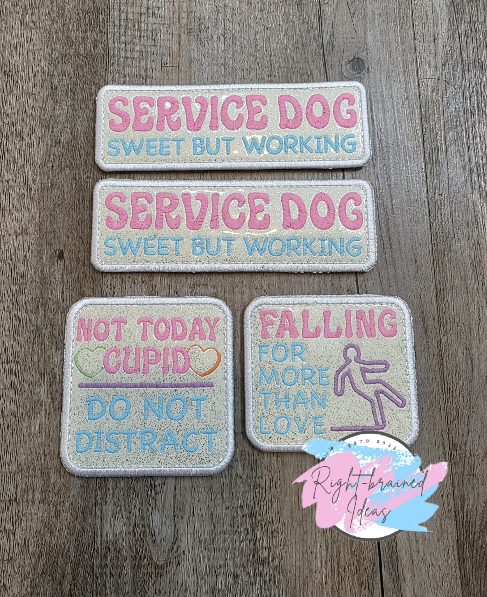 Frosted And Sweet Conversation Heart Inspired Service Dog Sweet But Working Multi-colored On Sparkle White Vinyl Four-piece Patch Set