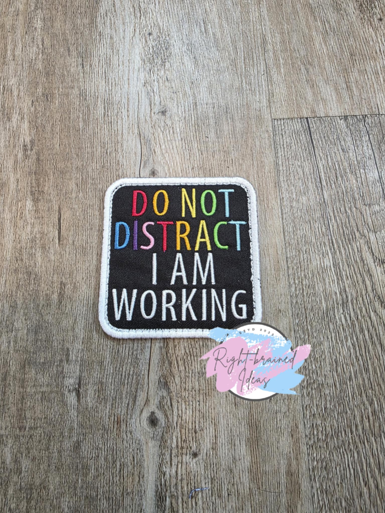 (1) 3.5in square patch: "I Am Working Do Not Distract"