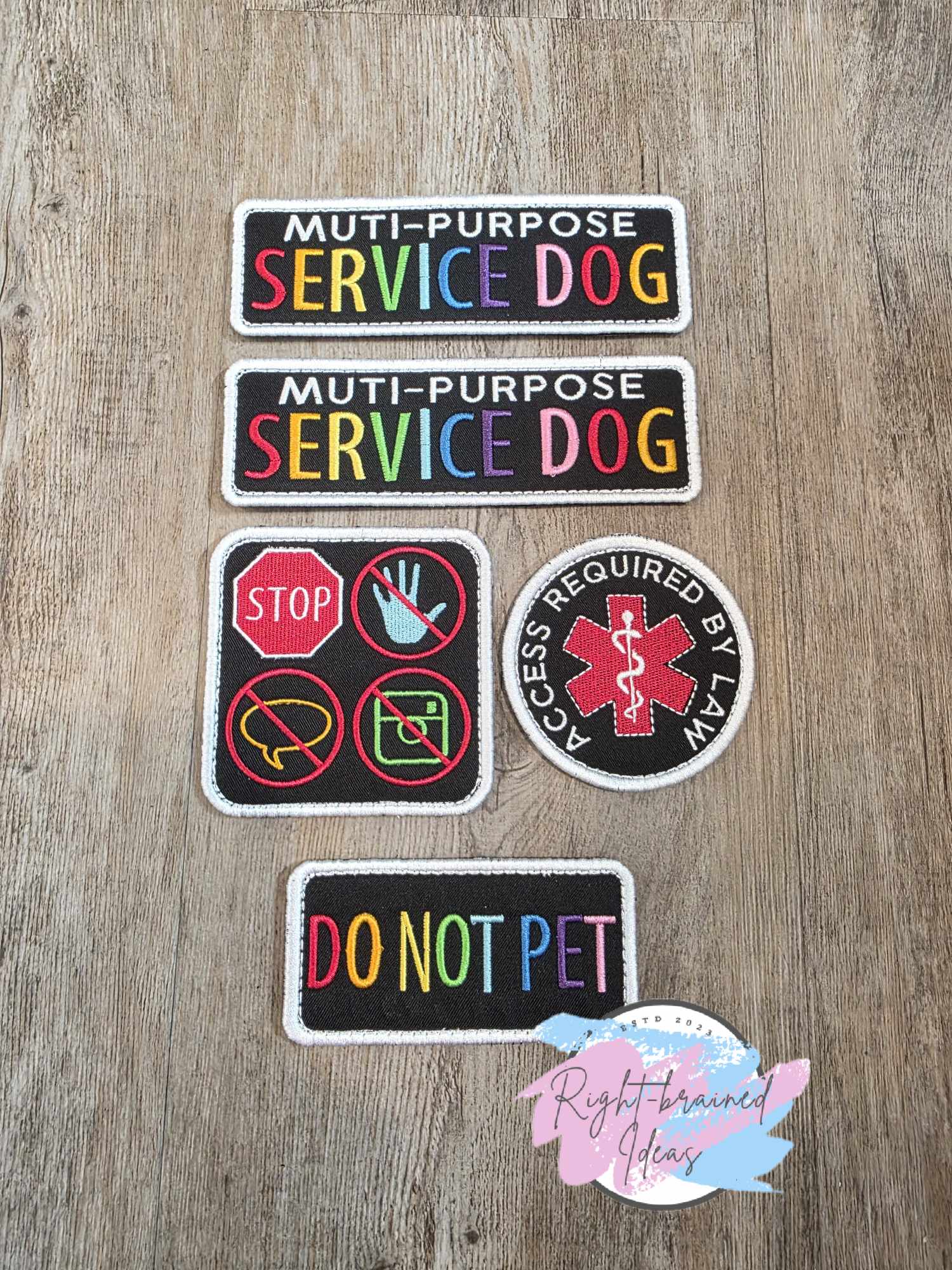 (2) 6in × 2in rectangular patches: "Multi-Purpose Service Dog"