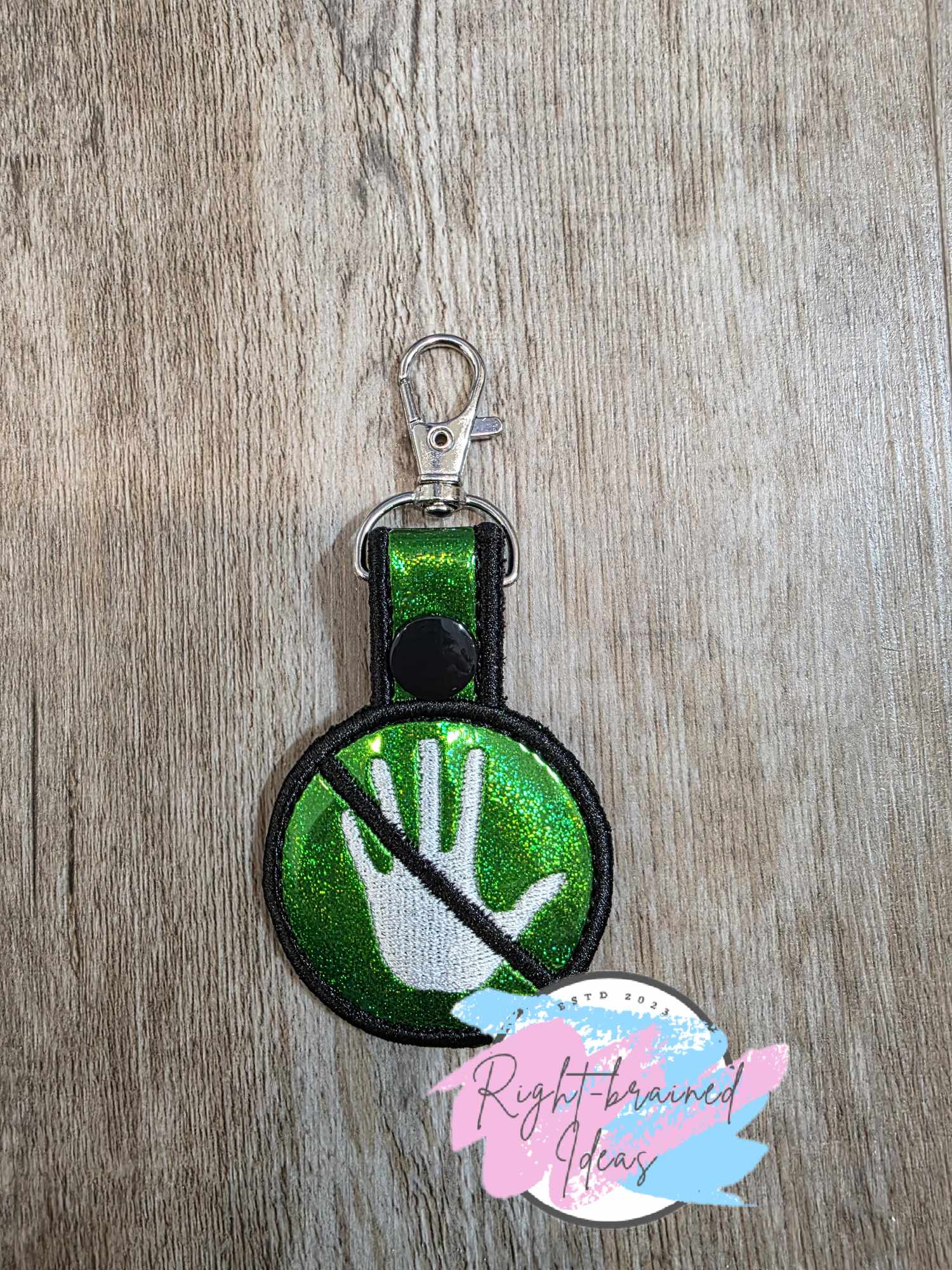 No Touching White and Black on Sparkle Green Holographic Vinyl Mini Patch Tab