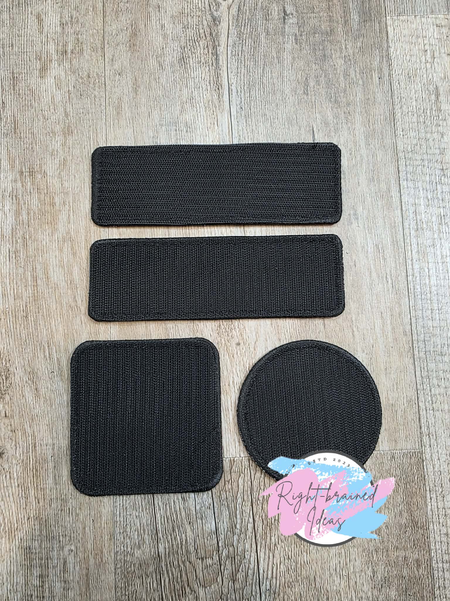 This is a four-piece patch set constructed of sparkle pink holographic vinyl with black and white embroidery. All patches have velcro sewn on back.