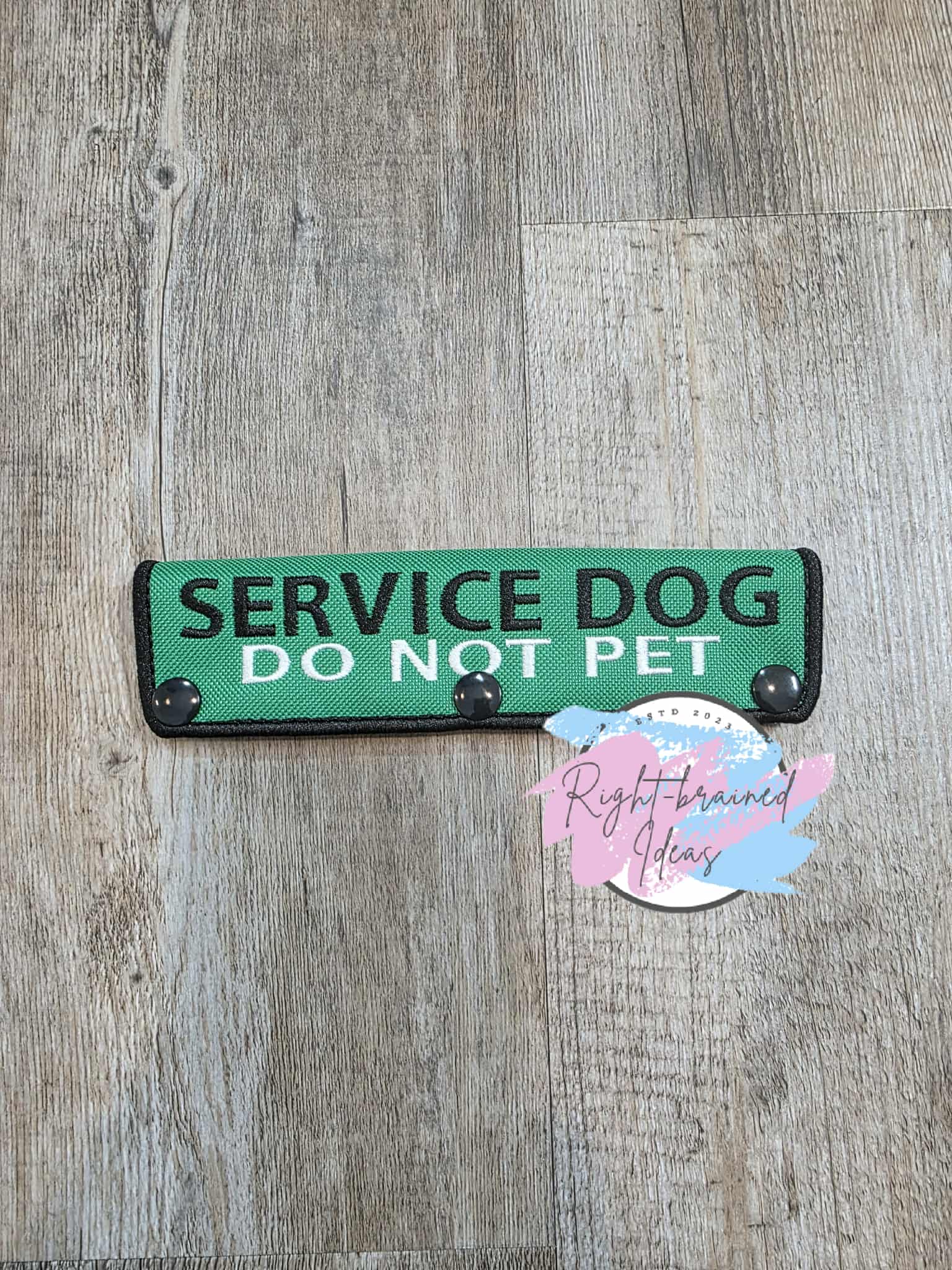 (1) 7in × 2in Kelly green canvas rectangular leash wrap: "Do Not Pet" in white. "Service Dog" in black
