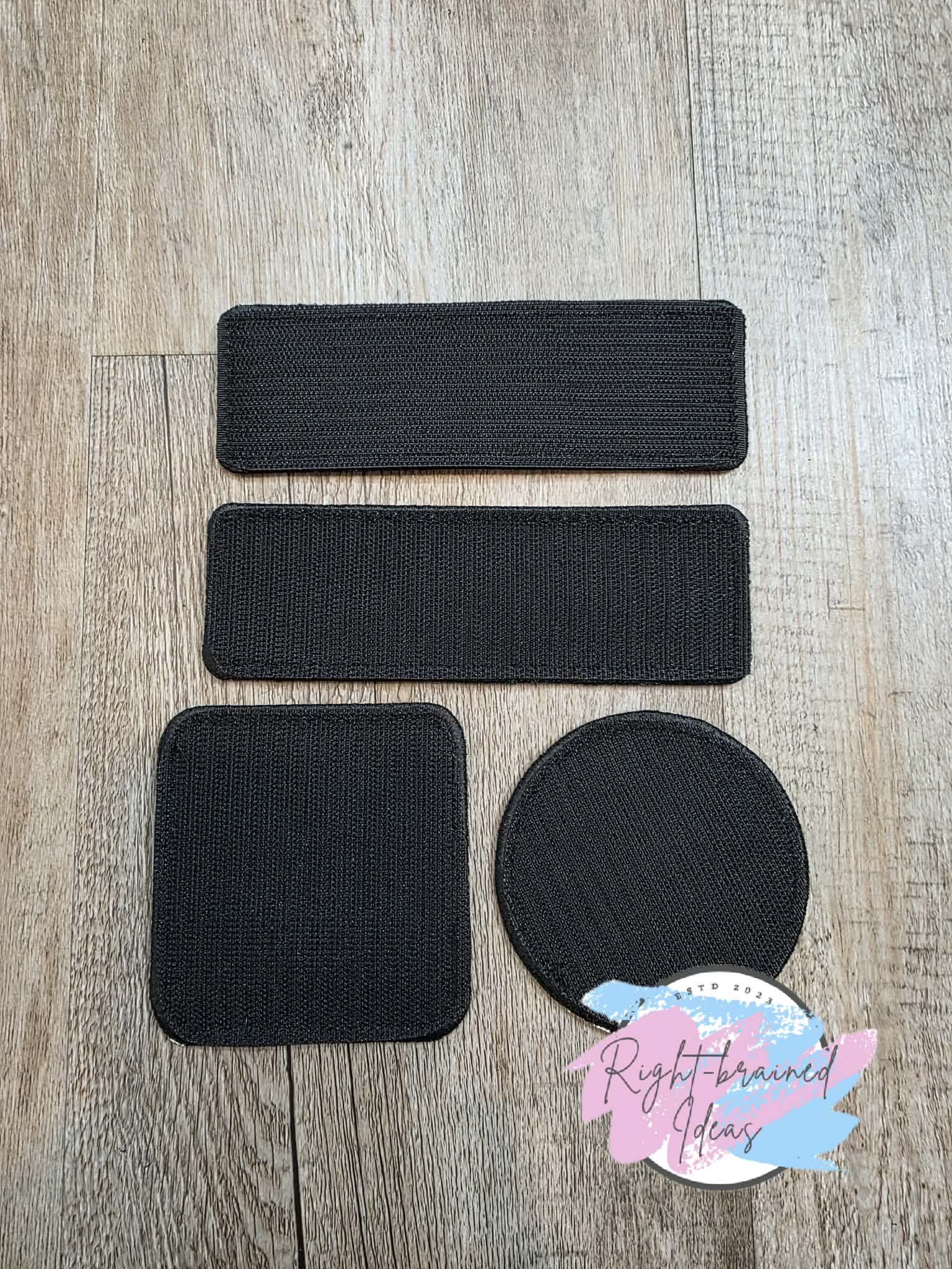 sparkle red vinyl with black and white embroidery. All patches have velcro sewn on back and have black satin borders.