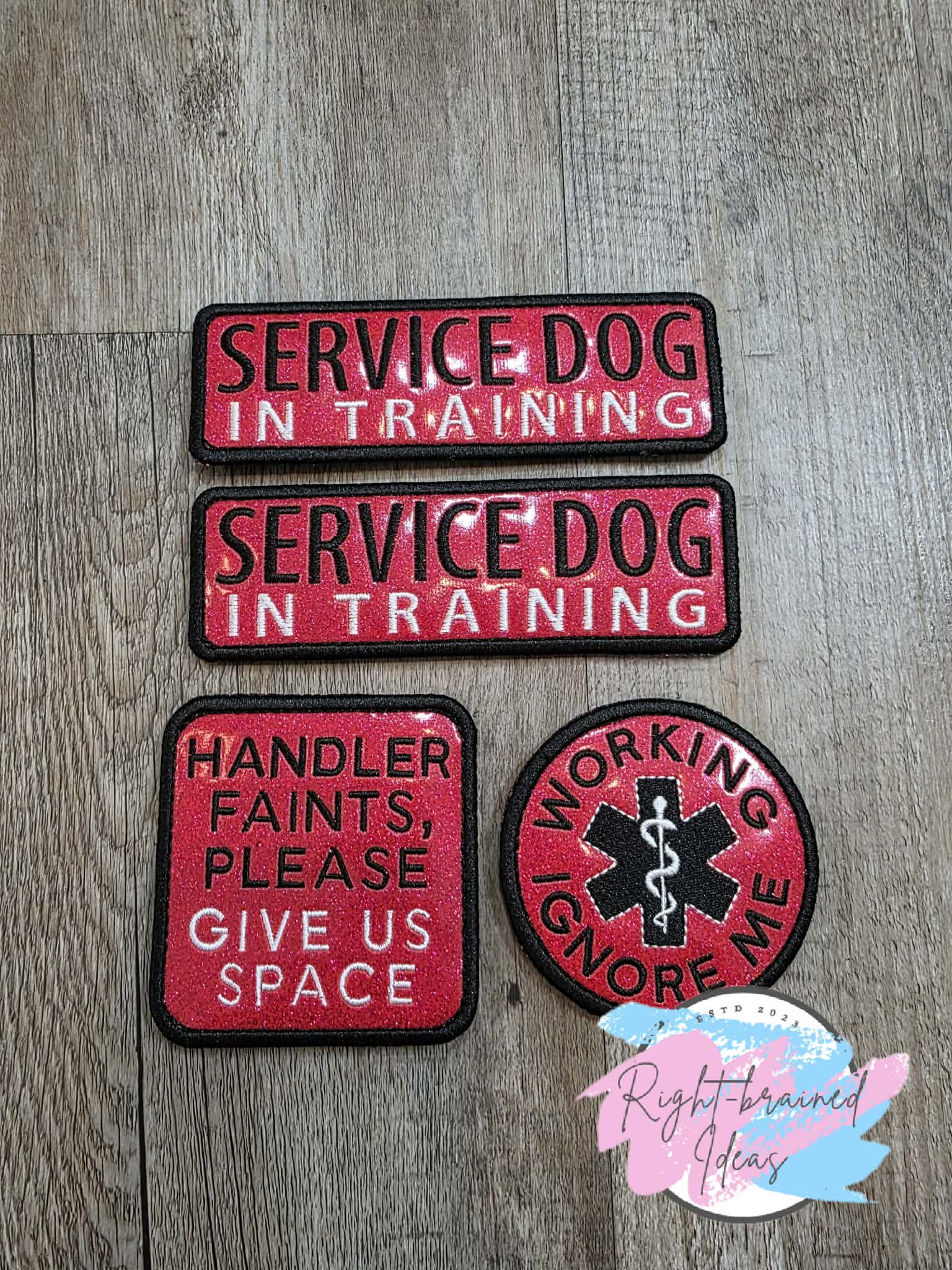 Service Dog In Training Black And White On Sparkle Red Holographic Vinyl Four-piece Patch Set
