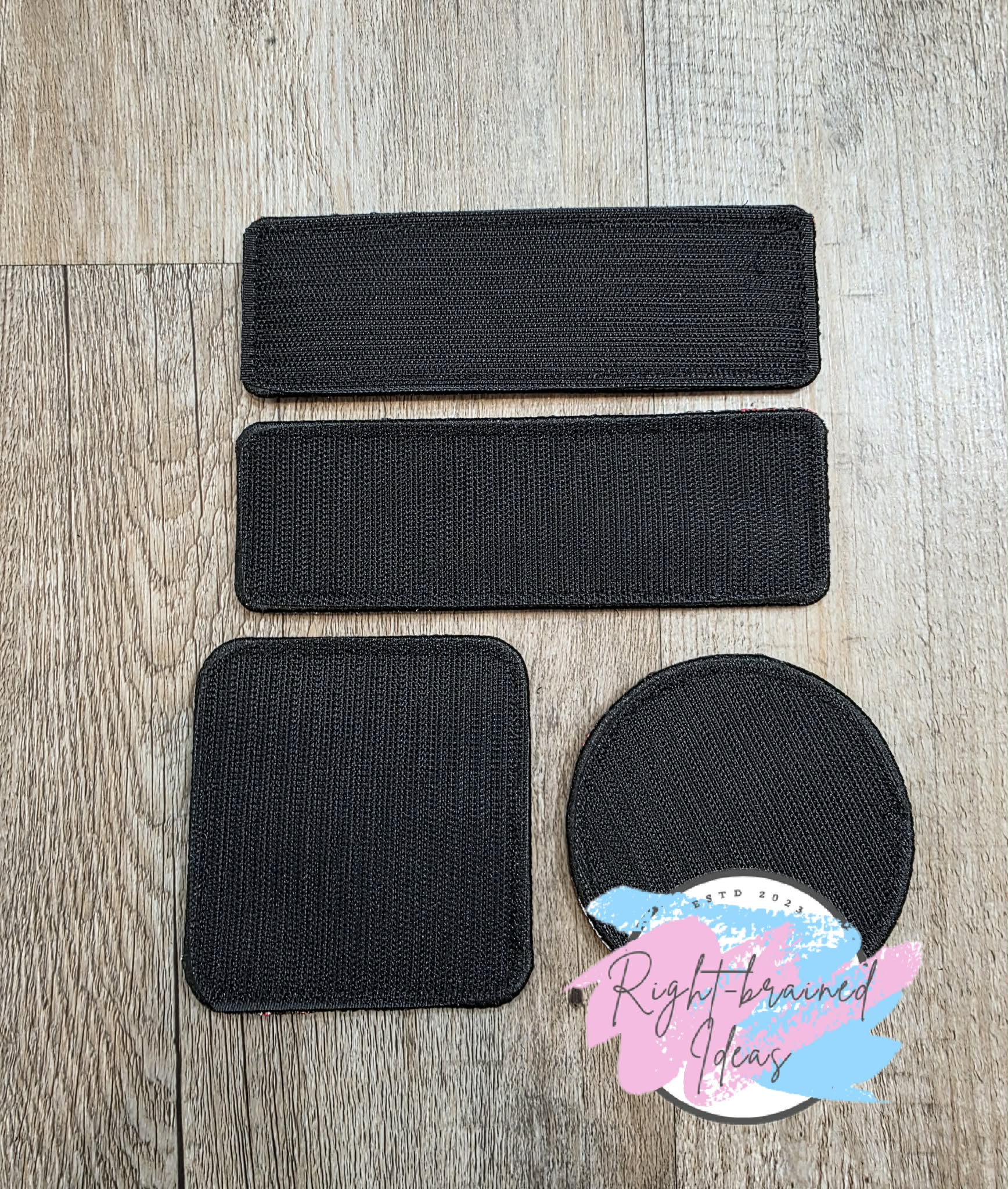 This is a four-piece patch set constructed of sparkle purple holographic vinyl with black and white embroidery. All patches have velcro sewn on back and have black satin borders.