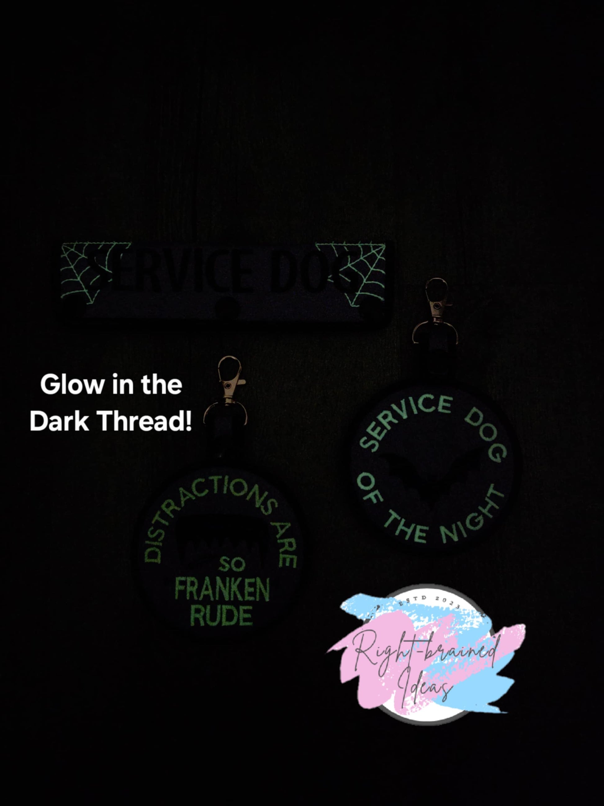 (1) 7in × 2in rectangular leash wrap: "Service Dog" with cobwebs wrapping the corners of the leash wrap.