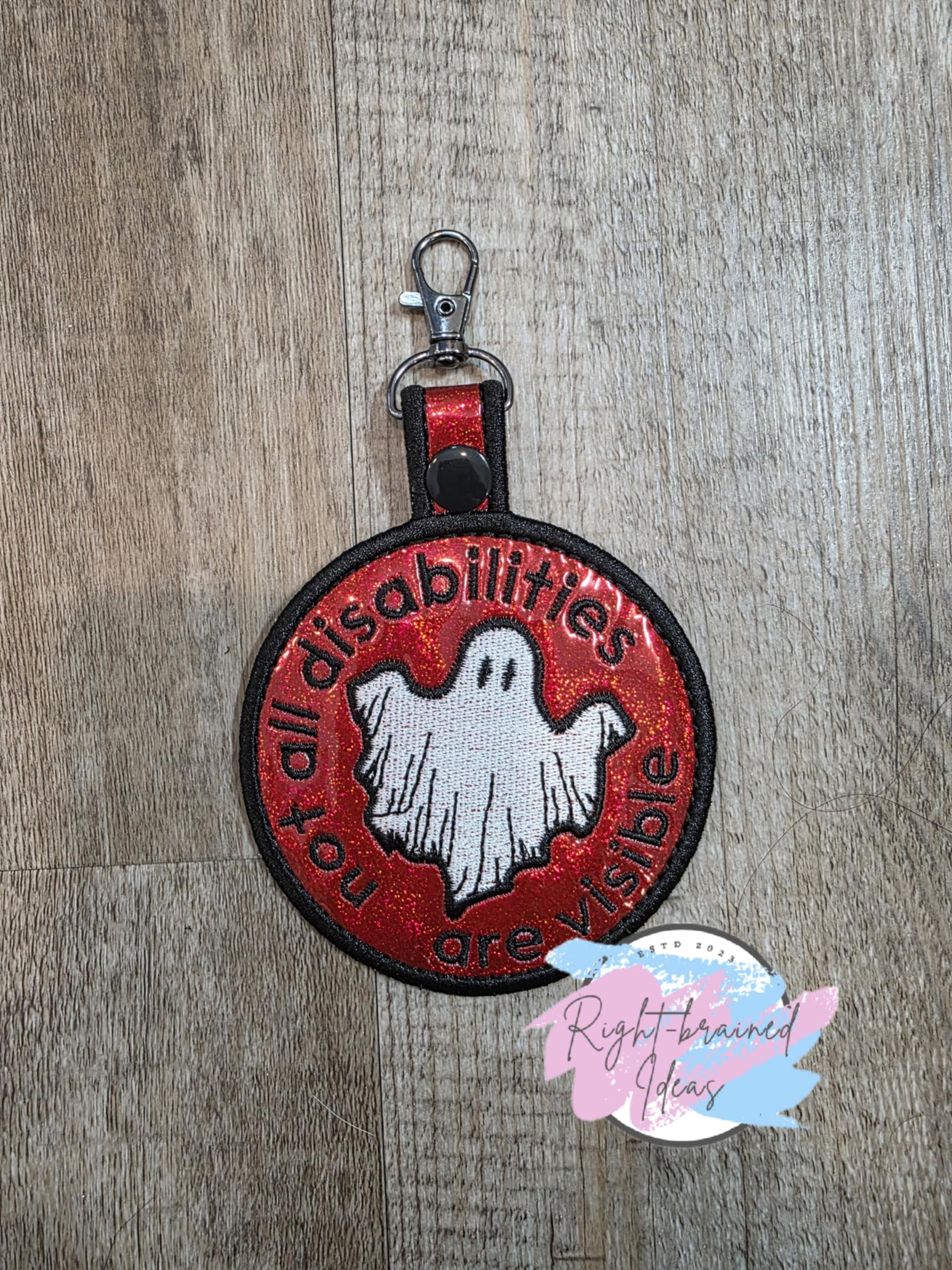 Spooky Season Inspired Not All Disabilities Are Visible White And Black On Sparkle Red Holographic Vinyl Patch Tab