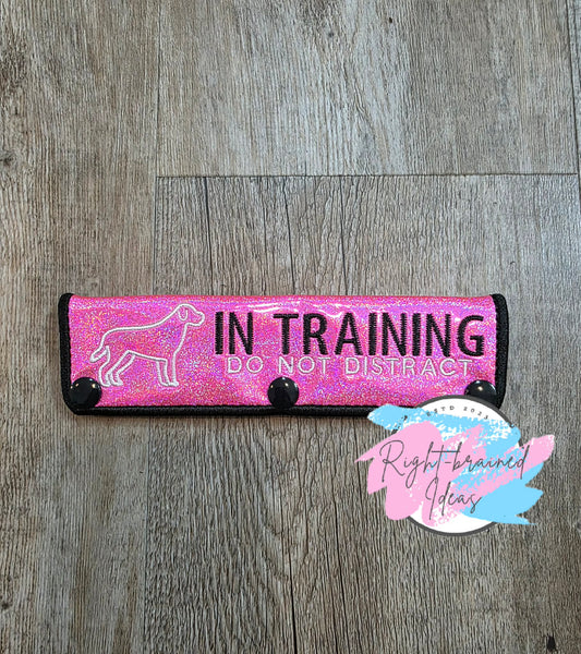 In Training Do Not Distract Black And White On Sparkle Pink Holographic Vinyl Five-piece Patch and Leash Wrap Set